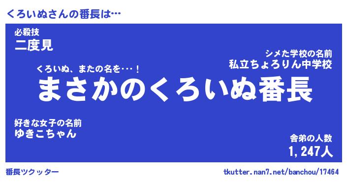 | 意味不明あだ名 | 『ペロリンくろいぬ』『永久保存くろいぬ』 |