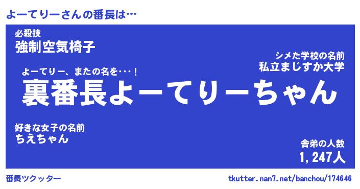 | 肩書あだ名 | 『よーてりー店長』『よーてりー総理大臣』 |