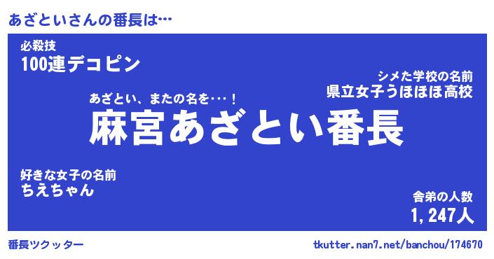 | ポケモン風あだ名 | 『アザチュウ』『アザトダネ』 |