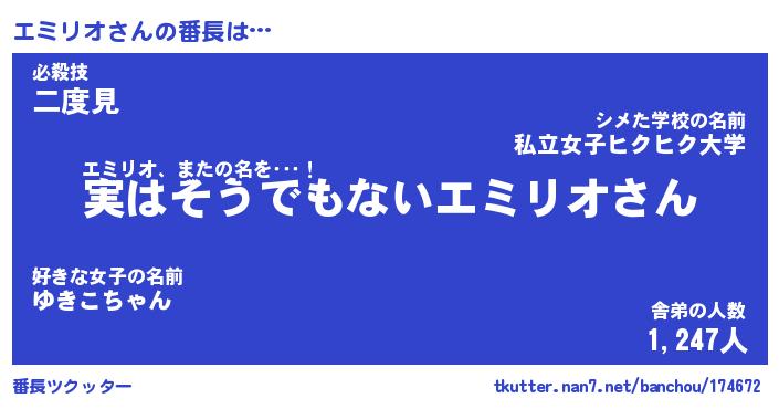 | ヒーロー風カッコイイあだ名 | 『スーパーエミリオ』『銀牙騎士エミ』 |