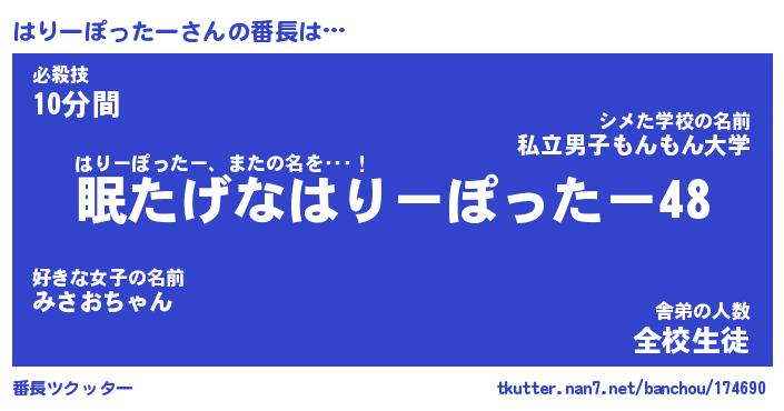 | 意味不明あだ名 | 『ペロリンはりーぽったー』 |