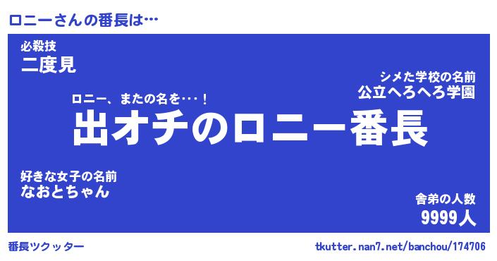 | 意味不明あだ名 | 『ペロリンロニー』『ロニーフォーエバー』 |