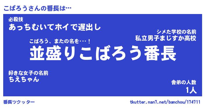 | 意味不明あだ名 | 『ペロリンこばろう』『永久保存こばろう』 |
