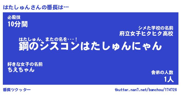 | ファンタジー風あだ名 | 『ハタフェル』『エターナルハタシュンー』 |