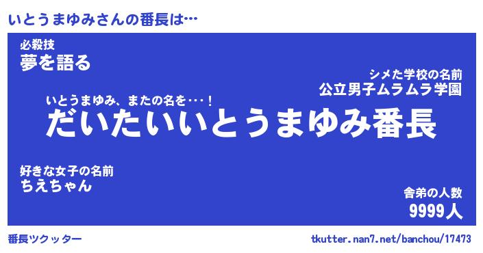 肩書あだ名 | 『いとうまゆみ社長』『いとうまゆみ団長』 |