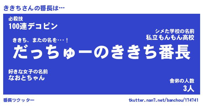 | ヒーロー風カッコイイあだ名 | 『スーパーキキチ』『ウルトラききちマン』 |
