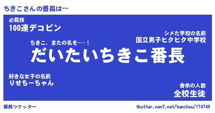 | ヒーロー風カッコイイあだ名 | 『スーパーチキコ』『ウルトラちきこマン』 |