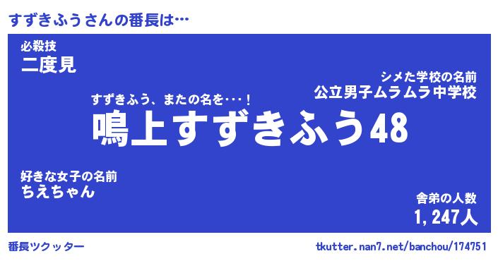 | ファンタジー風あだ名 | 『スズフェル』『エターナルスズキフウー』 |