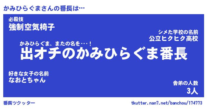 | 伝説のあだ名 | 『伝説のスナイパーかみひらぐま』 |