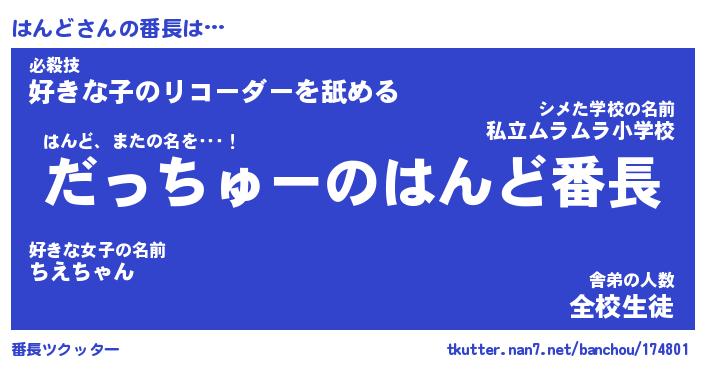 | ポケモン風あだ名 | 『ハンチュウ』『ハンドダネ』 |