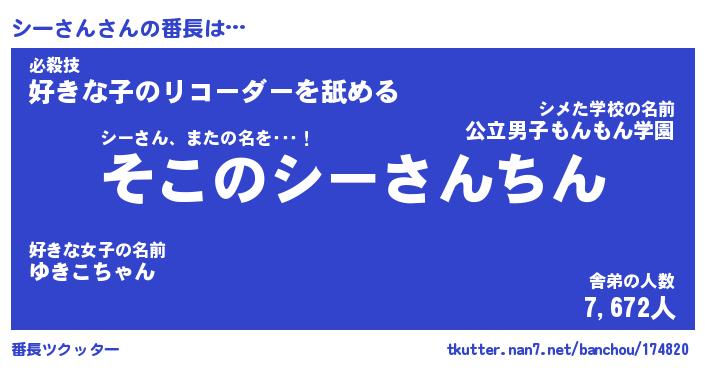 | 意味不明あだ名 | 『ペロリンシーさん』『永久保存シーさん』 |