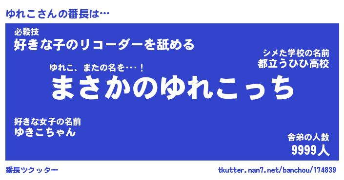 | 伝説のあだ名 | 『伝説のスナイパーゆれこ』 |
