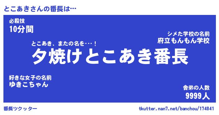 | 意味不明あだ名 | 『ペロリンとこあき』『永久保存とこあき』 |
