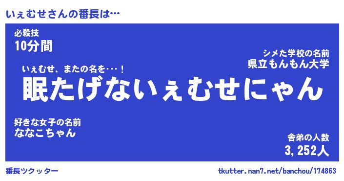 | 意味不明あだ名 | 『ペロリンいぇむせ』『永久保存いぇむせ』 |