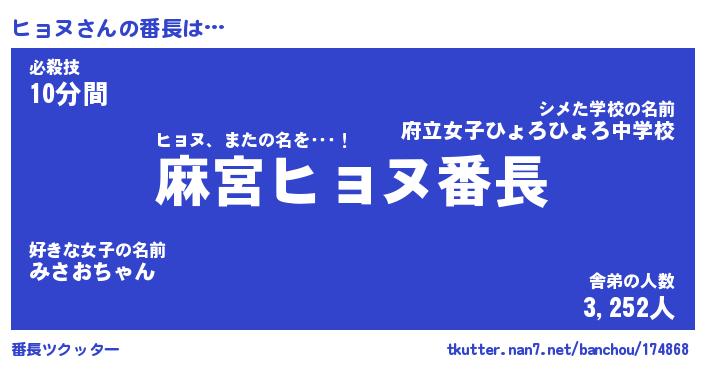| ポケモン風あだ名 | 『ヒョチュウ』『ヒョヌダネ』 |