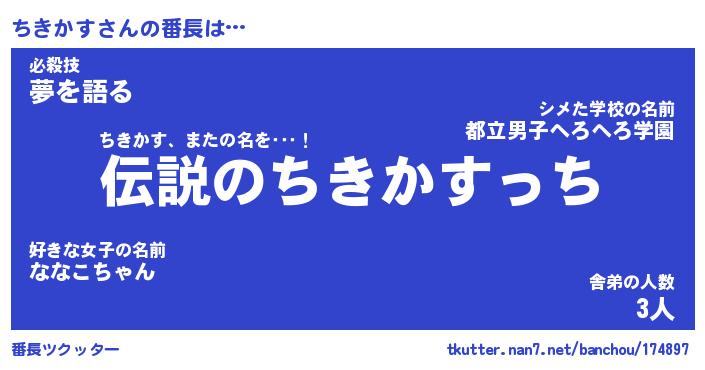 | 意味不明あだ名 | 『ペロリンちきかす』『永久保存ちきかす』 |