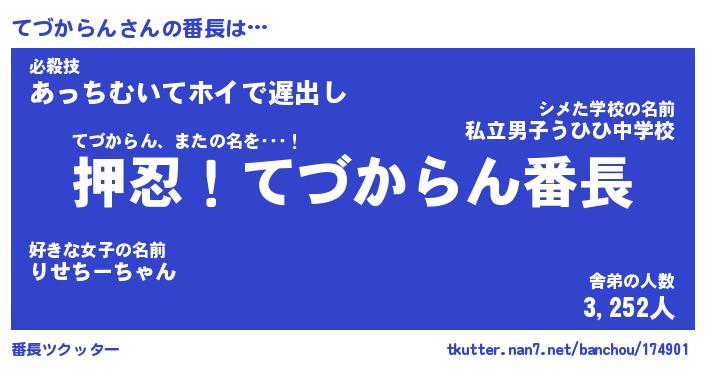 | ポケモン風あだ名 | 『テヅチュウ』『テヅカダネ』 |