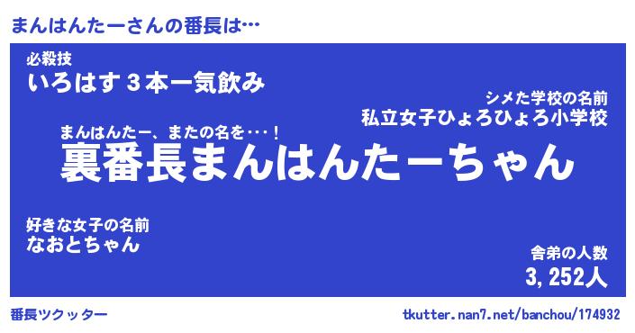 | ヘコむあだ名 | 『まんにー』『なまこ酢』『まんっ子』 |