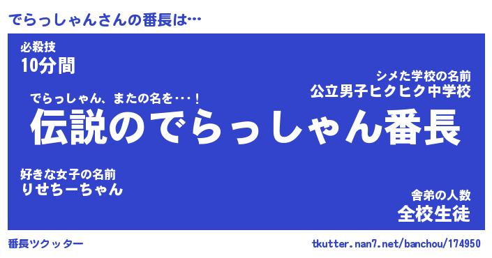 | ヒーロー風カッコイイあだ名 | 『スーパーデラッシャン』『暗黒騎士デラ』 |