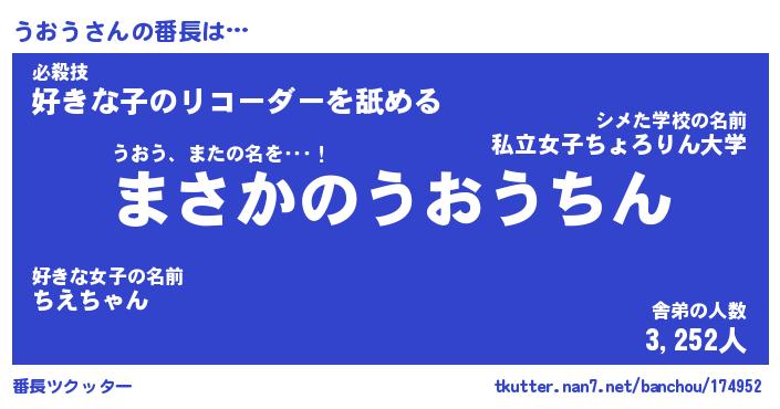 | 伝説のあだ名 | 『伝説のスナイパーうおう』 |