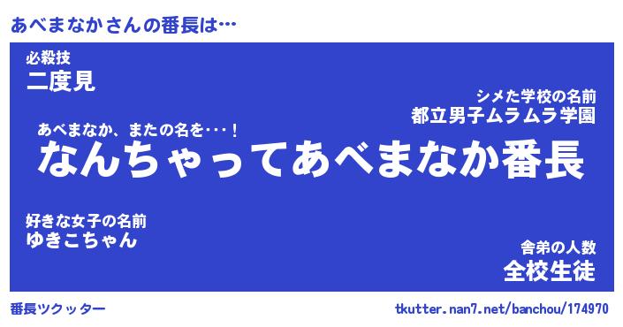 | 肩書あだ名 | 『あべまなか御曹司』『あべまなか班長』 |