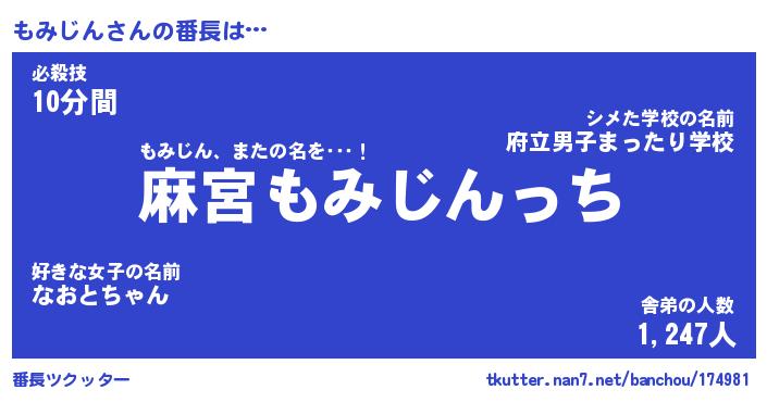 | 意味不明あだ名 | 『ペロリンもみじん』『永久保存もみじん』 |