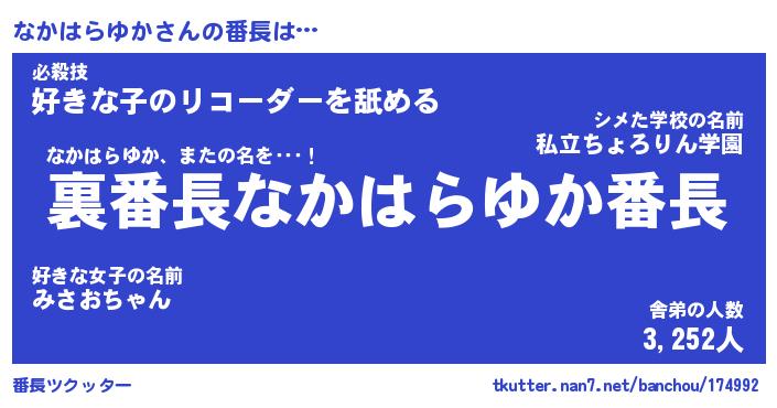 | 伝説のあだ名 | 『不死鳥のスナイパーなかはらゆか』 |