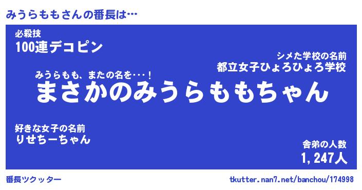 | ファンタジー風あだ名 | 『ミウフェル』『エターナルミウラモモー』 |
