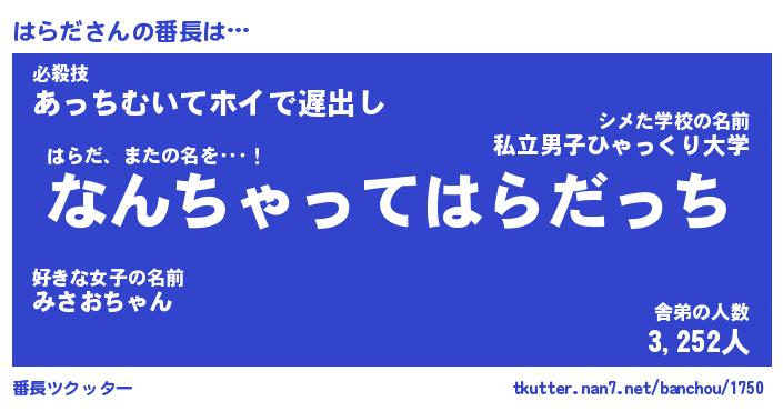 | 意味不明あだ名 | 『ペロリンはらだ』『はらだフォーエバー』 |