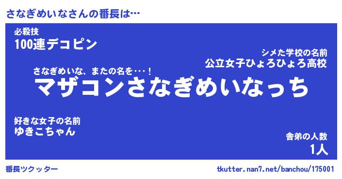| 肩書あだ名 | 『さなぎめいな社長』『さなぎめいな団長』 |