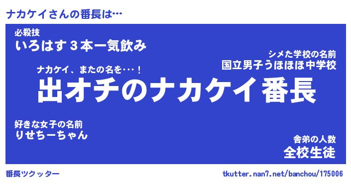 | ヒーロー風カッコイイあだ名 | 『スーパーナカケイ』『暗黒騎士ナカ』 |