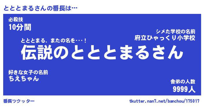 | 伝説のあだ名 | 『伝説のスナイパーとととまる』 |