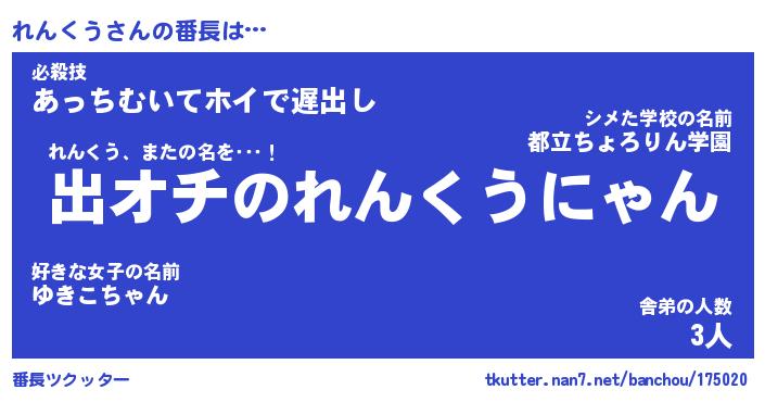 | 意味不明あだ名 | 『ペロリンれんくう』『永久保存れんくう』 |
