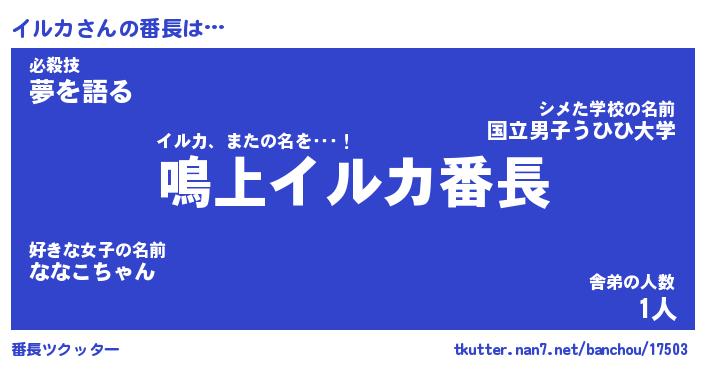 | ファンタジー風あだ名 | 『イルフェル』『エターナルイルカー』 |
