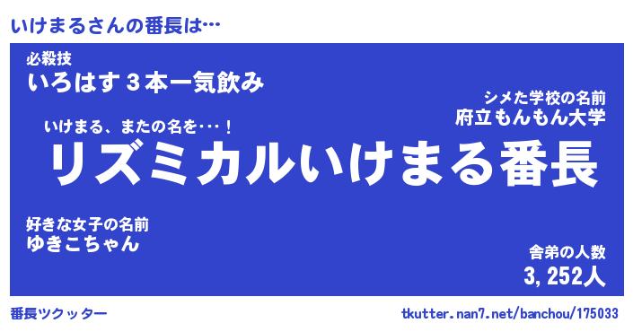 意味不明あだ名 | 『ペロリンいけまる』『永久保存いけまる』 |