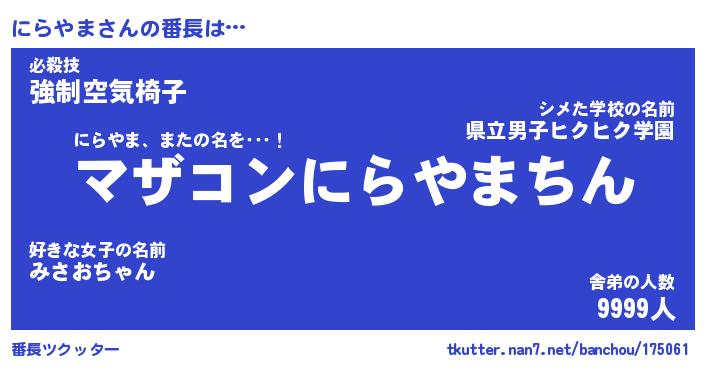 | ヒーロー風カッコイイあだ名 | 『スーパーニラヤマ』『魔戒騎士ニラ』 |