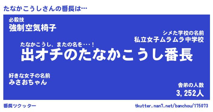 | 伝説のあだ名 | 『伝説のスナイパーたなかこうし』 |