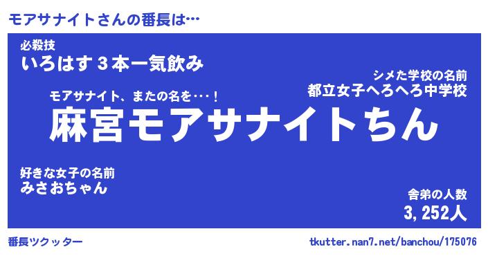 | ヒーロー風カッコイイあだ名 | 『スーパーモアサナイト』『銀牙騎士モア』 |