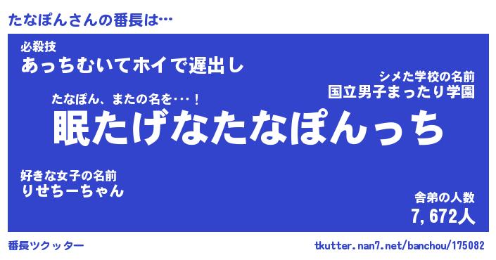 | 意味不明あだ名 | 『ペロリンたなぽん』『永久保存たなぽん』 |