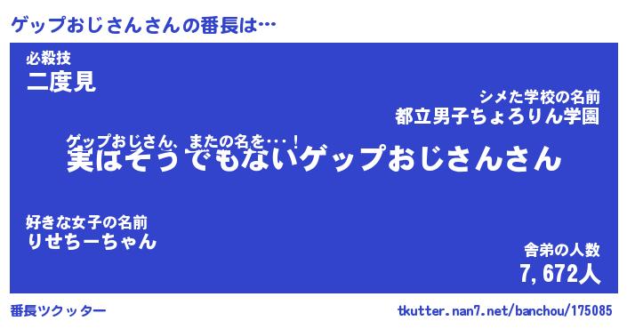 | 2回繰り返すあだ名 | 『ゲッゲッ』『ゲゲッッ』『ぬれぬれ』 |