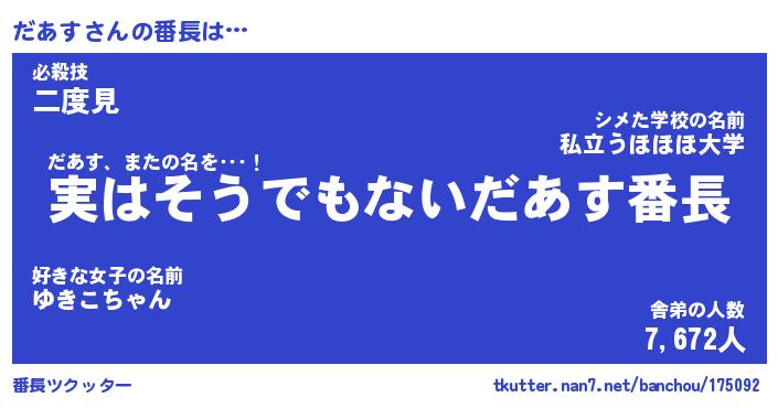 | ポケモン風あだ名 | 『ダアチュウ』『ダアスダネ』 |