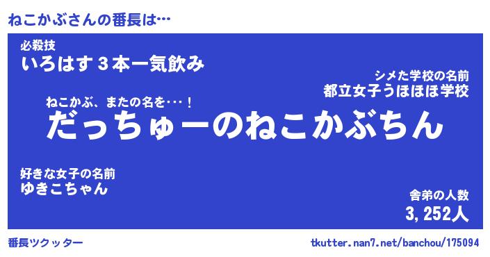 | ヘコむあだ名 | 『ねこにゅー』『なまこ酢』 |