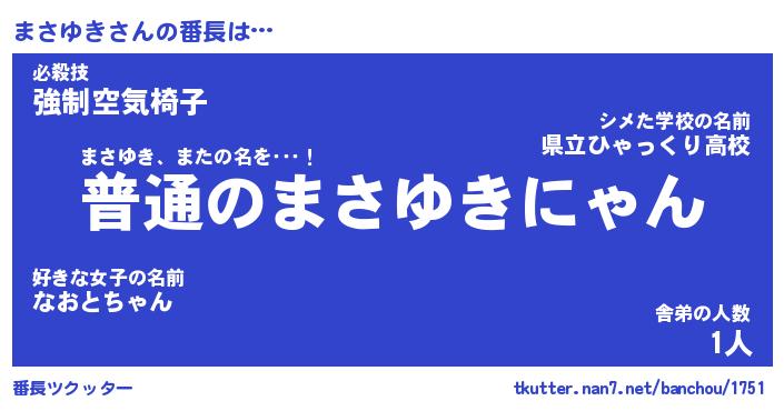 | ヘコむあだ名 | 『まさもー』『つくし』『まさ太郎』 |