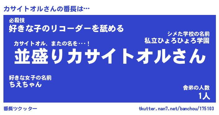 | 男性向けラノベタイトル風あだ名 | 『カサイトオルの憂鬱』 |