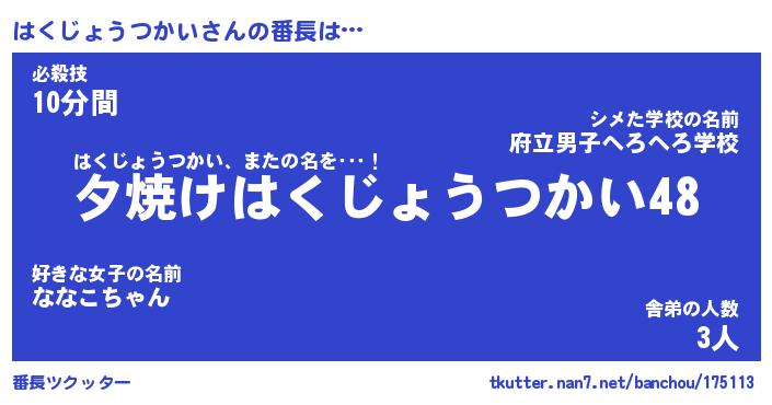 | ヒーロー風カッコイイあだ名 | 『スーパーハクジョウツカイ』 |