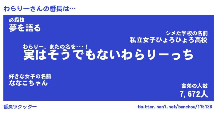| 伝説のあだ名 | 『封印されしスナイパーわらりー』 |