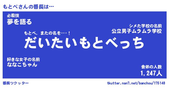 | 肩書あだ名 | 『もとべCEO』『もとべ大統領』 |