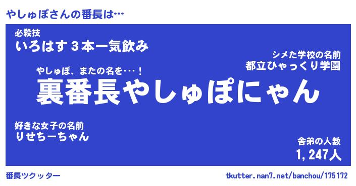 | 意味不明あだ名 | 『ペロリンやしゅぽ』『永久保存やしゅぽ』 |