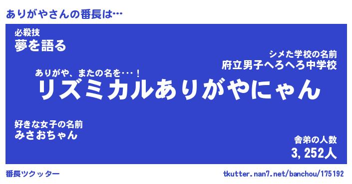 | 意味不明あだ名 | 『ペロリンありがや』『永久保存ありがや』 |