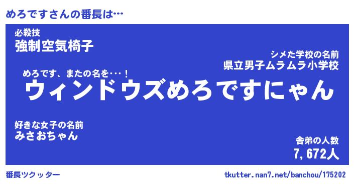 | 伝説のあだ名 | 『伝説のスナイパーめろです』 |